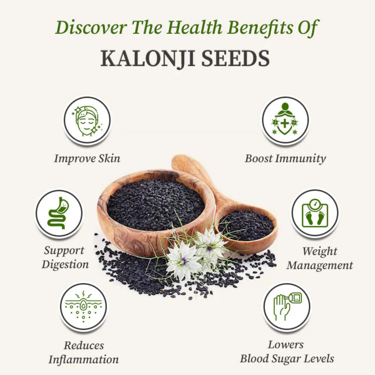 Kalonji seeds are used for cooking, digestion support, immunity boosting, and hair care remedies.