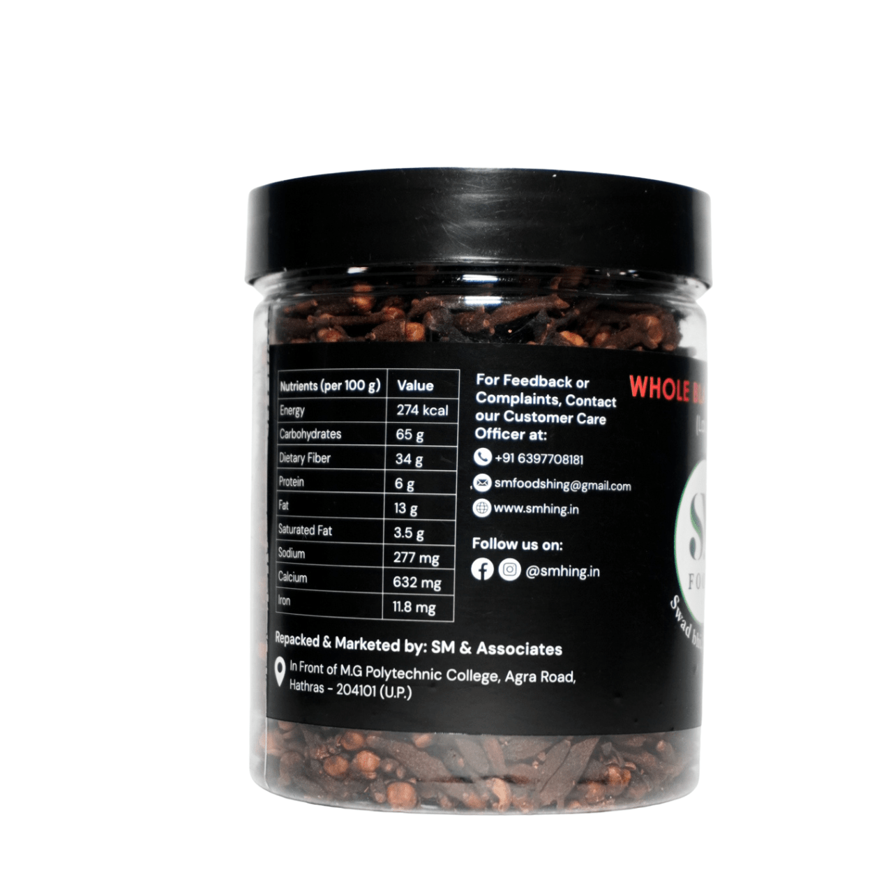 October 15, 2025Premium Whole Cloves (Laung), handpicked and sun-dried from SM Foods Organic Farms. These 100% natural, pure cloves are aroma-locked at source for maximum freshness. Aromatic and flavourful, they add authentic taste to Indian cooking and offer natural health benefits. Known as Lavangam, these versatile whole spices are ideal for both culinary and wellness uses. No additives or preservatives.